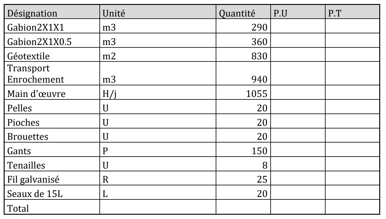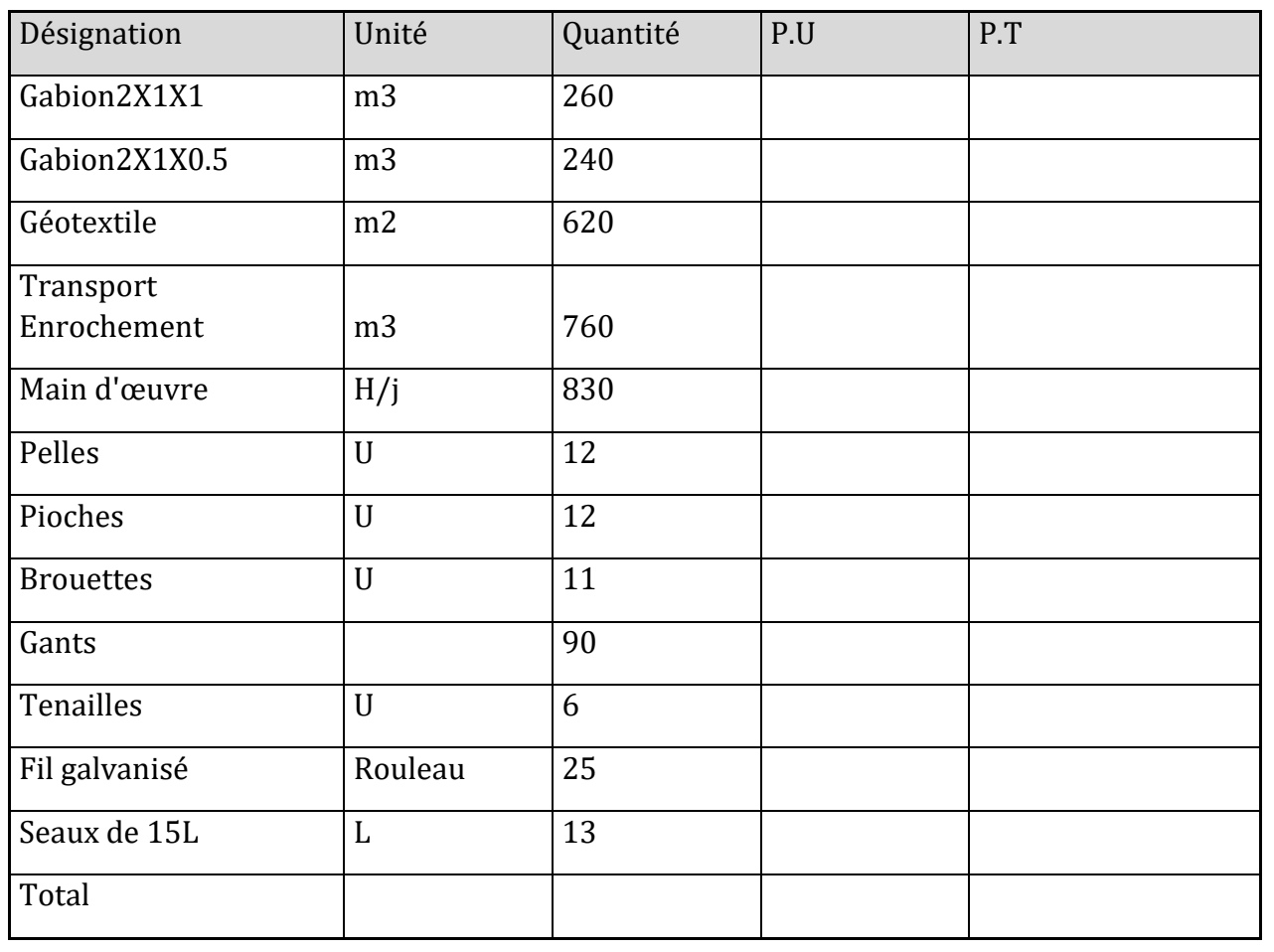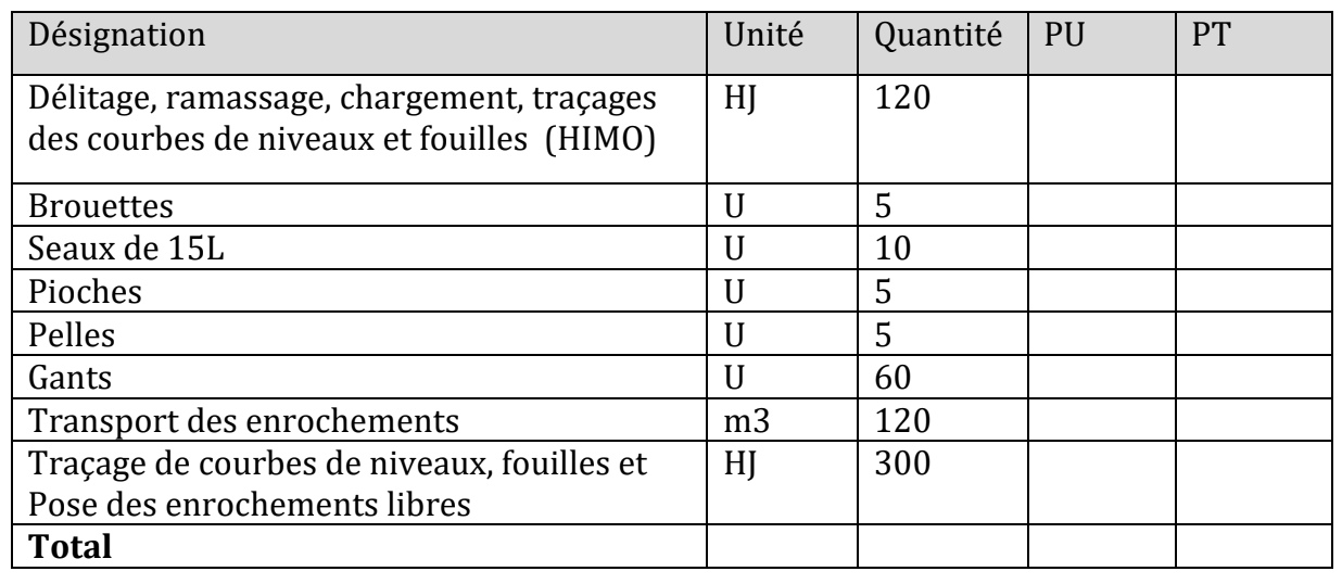 5. Offre financière : Faire une proposition financière conformément au devis quantitatif et estimatif présenté ci-dessous :
