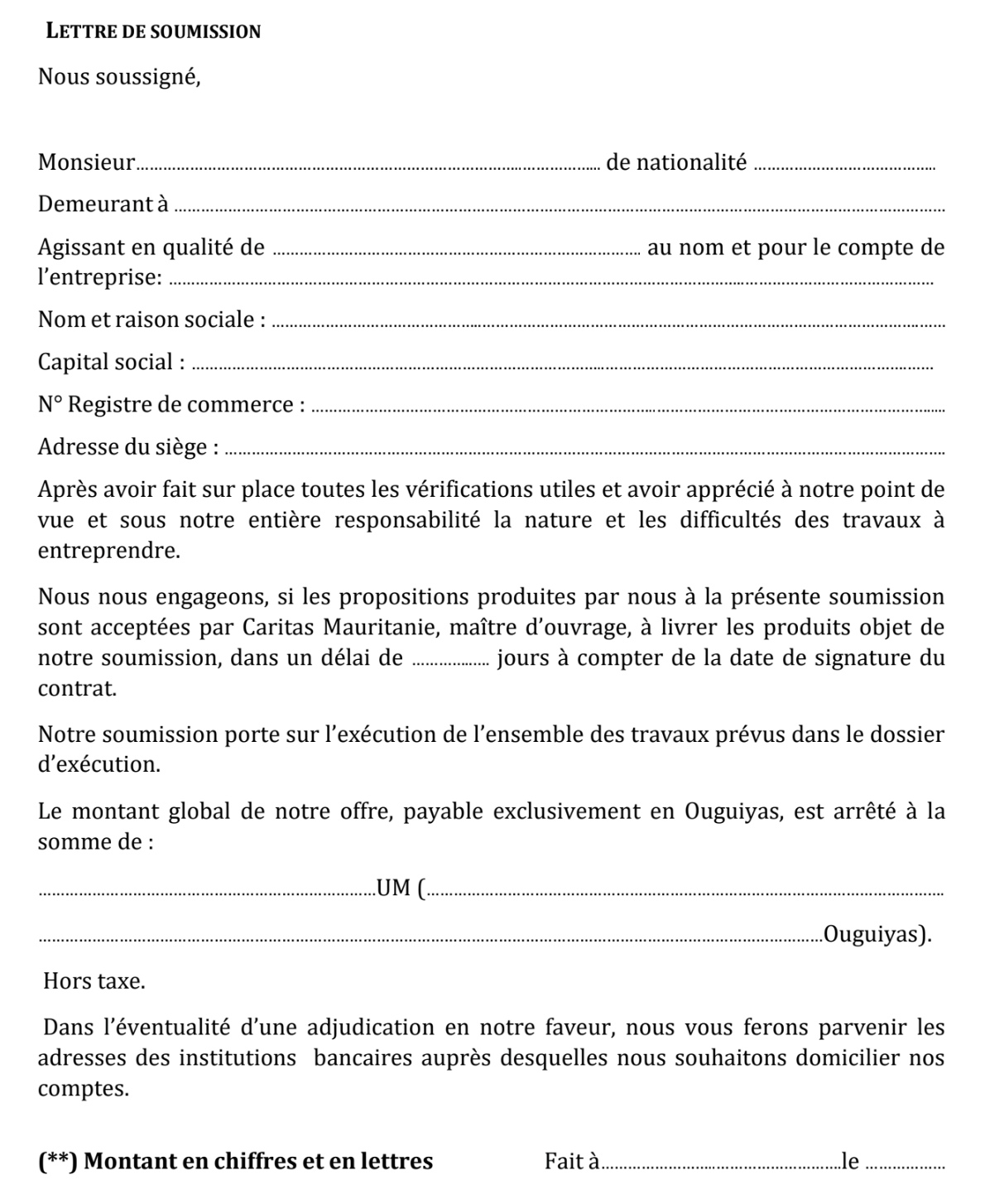 La lettre de soumission conforme au modèle complétée, datée, signée de l'offre pour engager le soumissionnaire ;